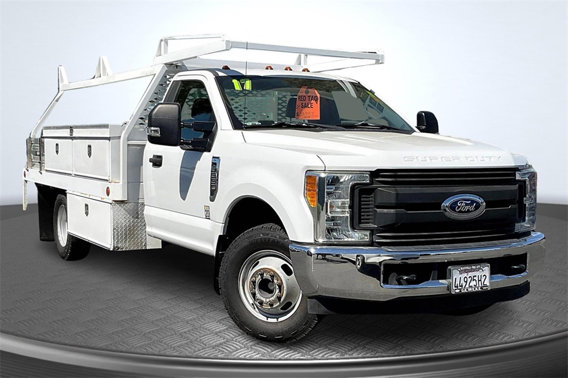 Geweke Ford Kia is pleased to offer this. 2017 Ford F-350SD XL DRW Oxford White RWD 6.2L V8 EFI SOHC 16V Flex Fuel TorqShift 6-Speed Automatic Priced below KBB Fair Purchase Price! CARFAX One-Owner. Clean CARFAX. ONE OWNER, Text us at 530-232-5950, Scelzi Utility Body. See us today at Larry Geweke Ford Kia! www.geweke.com Excellent selection of Used Vehicles, Financing Options, Serving Lodi, Sacramento, Chico, Oroville, Gridley, Colusa, Yuba City, Marysville, Sutter County, Yuba County, Butte County, Colusa County, Placer County, Shasta County, Tehama County, Sacramento County.Prices do not include government fees and taxes, any finance charges, any dealer document processing charge, any electronic filing charge and any emission testing charge. Awards: * 2017 KBB.com 10 Most Awarded Brands * 2017 KBB.com Brand Image Awards Reviews: * Turbodiesel V8 generates immense power and torque; stronger frame and suspension enable increased payload and tow ratings; aluminum body reduces overall weight and improves efficiency; spacious new cabs offer many convenience and technology options. Source: Edmunds