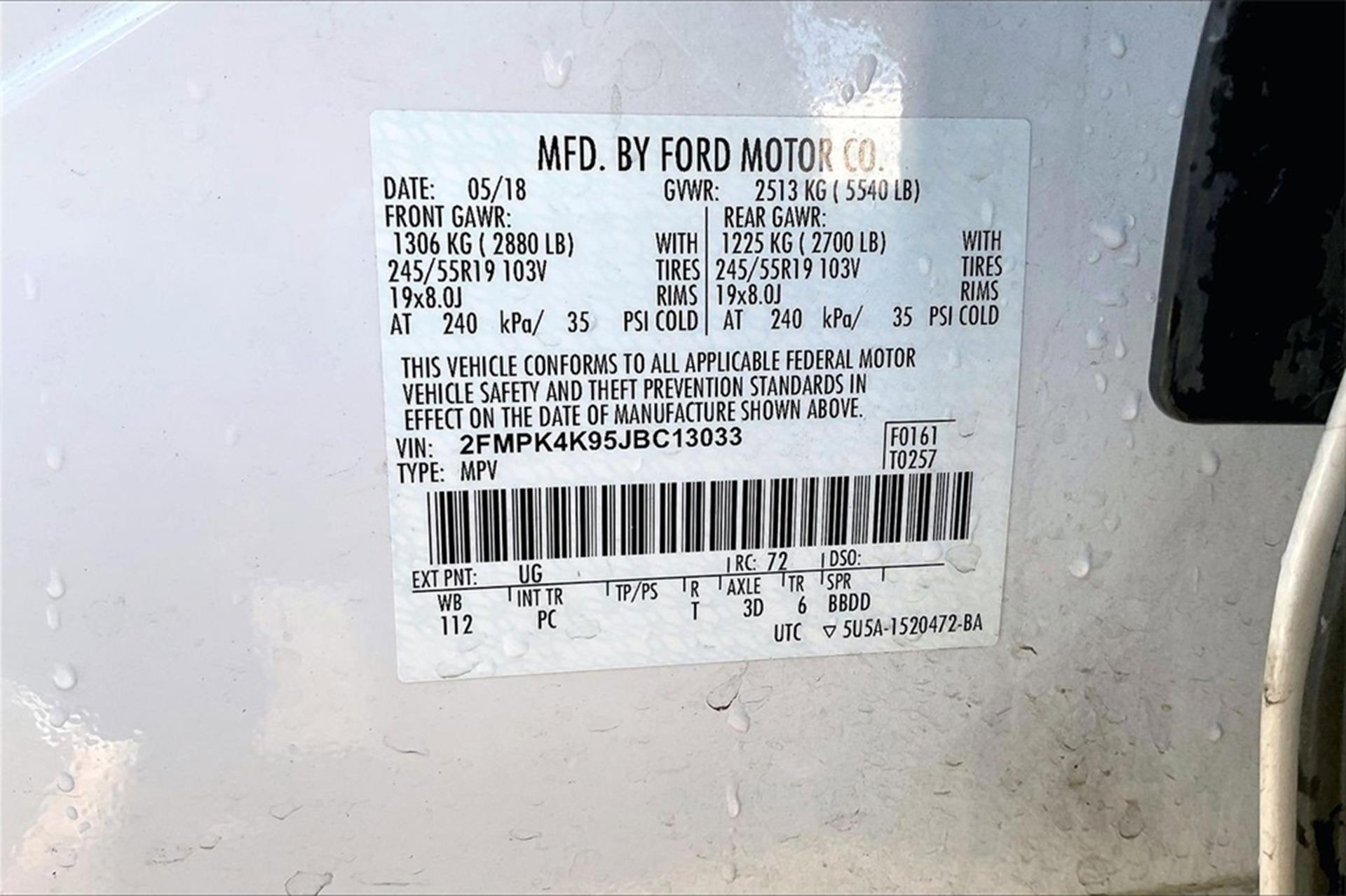 VIN: 2FMPK4K95JBC13033