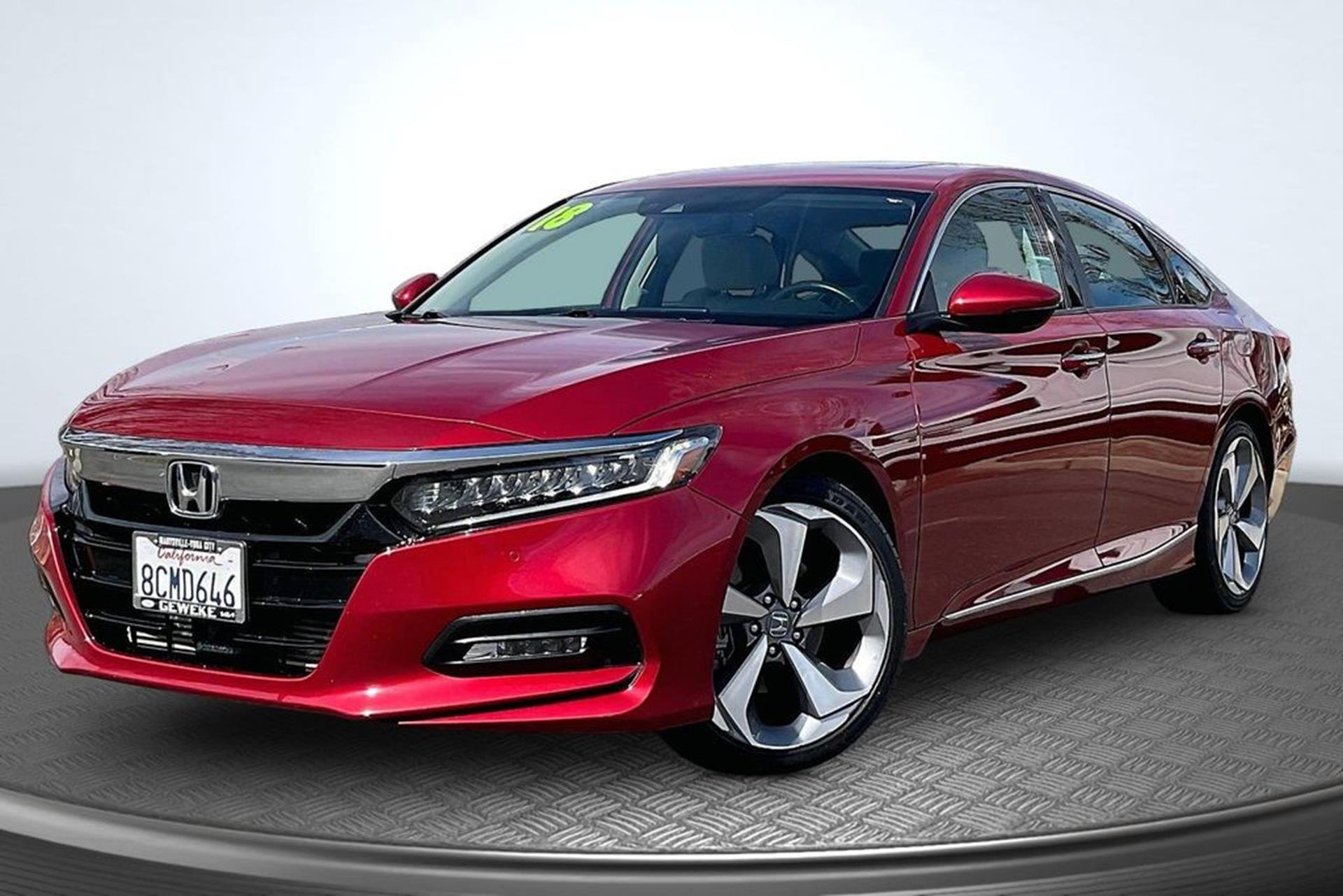 Geweke Ford Kia is pleased to offer this. 2018 Honda Accord Touring Radiant Red Metallic FWD 1.5T I4 DOHC 16V Turbocharged VTEC CVT Text us at 530-232-5950, 3 Month/3,000 Mile Powertrain Warranty Included!, Ivory Leather. Odometer is 8260 miles below market average! 29/35 City/Highway MPG See us today at Larry Geweke Ford Kia! www.geweke.com Excellent selection of Used Vehicles, Financing Options, Serving Lodi, Sacramento, Chico, Oroville, Gridley, Colusa, Yuba City, Marysville, Sutter County, Yuba County, Butte County, Colusa County, Placer County, Shasta County, Tehama County, Sacramento County.Prices do not include government fees and taxes, any finance charges, any dealer document processing charge, any electronic filing charge and any emission testing charge. Awards: * JD Power Automotive Performance, Execution and Layout (APEAL) Study * ALG Residual Value Awards, Residual Value Awards * NACTOY 2018 North American Car of the Year * 2018 KBB.com Brand Image Awards * 2018 KBB.com 10 Most Awarded Brands Kelley Blue Book Brand Image Awards are based on the Brand Watch(tm) study from Kelley Blue Book Market Intelligence. Award calculated among non-luxury shoppers. For more information, visit www.kbb.com. Kelley Blue Book is a registered trademark of Kelley Blue Book Co., Inc.