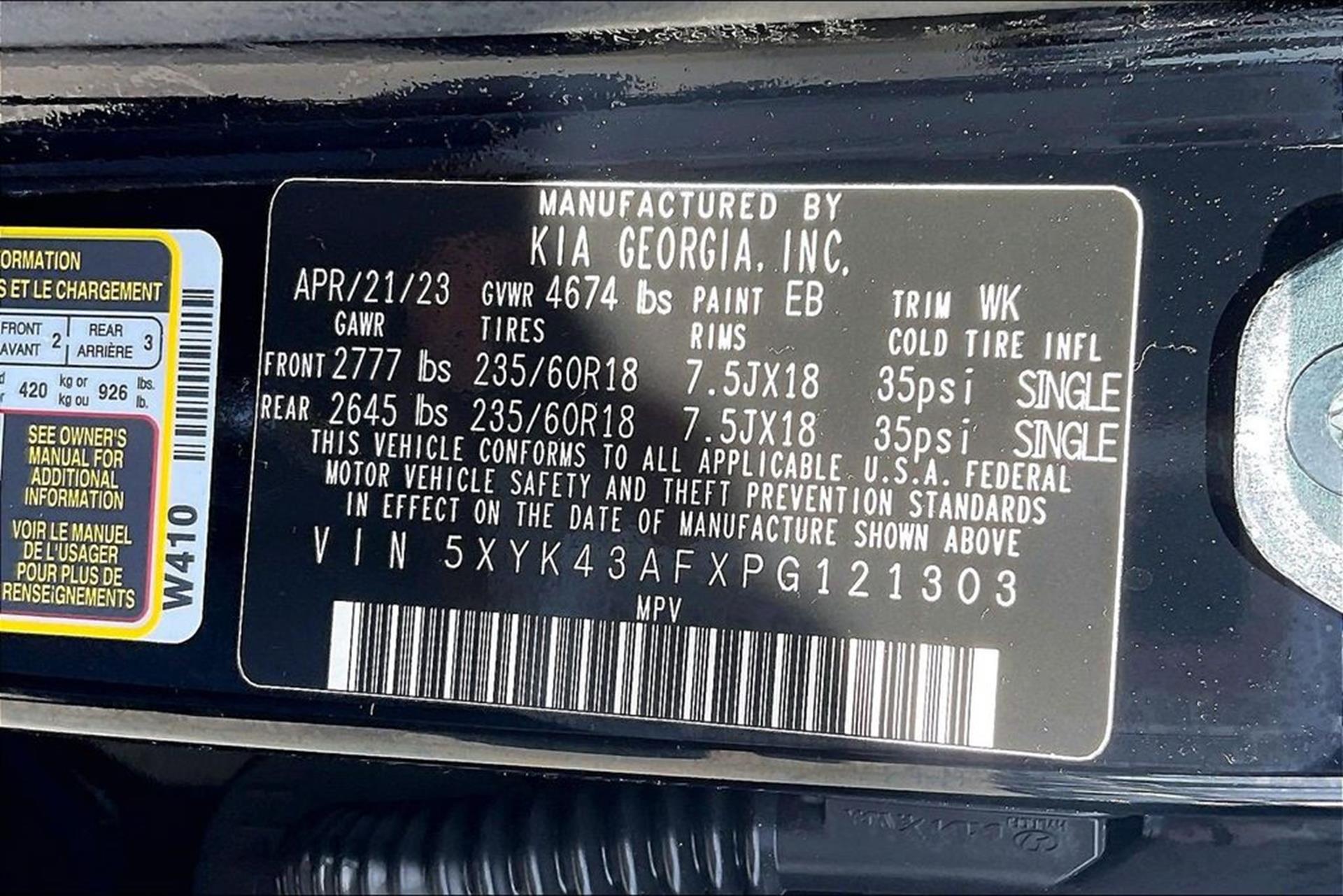 VIN: 5XYK43AFXPG121303